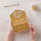 Conception d'invitation pour une fête du 75e anniversaire de mariage, jubilé de diamant et d'or, en forme de cœur, avec carte RSVP détachable et sans enveloppe. Bel effet doré liquide avec des diamants dans un cœur. Cartes d'invitation pour 75 ans de mariage, personnalisez avec les détails de votre fête d'anniversaire de mariage. Le 75e anniversaire est traditionnellement associé aux diamants et à l'or et le cœur symbolise l'amour. D'autres articles assortis sont disponibles. Graphismes et conception par Sarah Trett pour www.mylittleeden.com et www.mylittleedenweddings.com