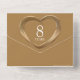 Conception d'invitation pour une fête d'anniversaire de mariage de bronze, RSVP détachable, et sans enveloppe nécessaire. Bel effet de bronze liquide en forme de cœur imprimé sur des invitations pour les 8 ans d'anniversaire de mariage, personnalisez avec les détails de votre fête d'anniversaire de mariage. Le huitième anniversaire de mariage est traditionnellement associé au bronze et le cœur symbolise l'amour. D'autres articles assortis sont disponibles. Graphiques et conception par Sarah Trett pour www.mylittleeden.com et www.mylittleedenweddings.com