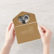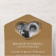Invitation pour une fête d'anniversaire de mariage de bronze avec un porte-photo, RSVP détachable, et sans enveloppe nécessaire. Bel effet de bronze liquide en forme de cœur imprimé sur des cartons d'invitation pour les 8 ans d'anniversaire de mariage, personnalisez avec vos propres détails de fête d'anniversaire de mariage, une photo du couple heureux. Le huitième anniversaire de mariage est traditionnellement associé au bronze et le cœur symbolise l'amour. D'autres articles assortis sont disponibles. Graphismes et conception de Sarah Trett pour www.mylittleeden.com et www.mylittleedenweddings.com