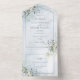Invitation Tout En Un Aquarelle bleu Dusty vert botanique Script