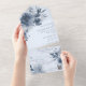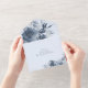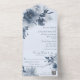 Cette belle invitation présente des tons de fleurs d'aquarelle bleu poussiéreux sur un arrière - plan bleu pâle, adapté à de nombreux types de mariages - des affaires décontractées à plus formel. Les invitations de mariage tout-en-un sont à la fois belles et pratiques en combinant le faire-part de mariage avec une carte postale RSVP perforée facile à enlever. Ils sont aussi rapides et faciles à préparer pour l'envoi. Adressez-vous simplement à l'invitation, pliez le rabat arrière et scellez avec les autocollants clairs inclus. Une fois que vos invités reçoivent l'invitation préadressée, ils arrachent simplement la carte perforée RSVP et la déposez dans le courrier. L'ajout du code QR permet à vos invités d'accéder facilement à votre site mariage pour obtenir des informations, notamment les détails de la réception et les choix de dîner !