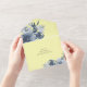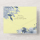 Découvrez la beauté et le charme de ce faire-part de mariage floral bleu poussiéreux à l'aquarelle, et laissez votre amour fleurir dans chaque détail de votre journée spéciale. Les invitations de mariage tout-en-un sont à la fois belles et pratiques en combinant le faire-part de mariage avec une carte postale RSVP perforée facile à enlever. Ils sont aussi rapides et faciles à préparer pour l'envoi. Adressez-vous simplement à l'invitation, pliez le rabat arrière et scellez avec les autocollants clairs inclus. Une fois que vos invités reçoivent l'invitation préadressée, ils arrachent simplement la carte perforée RSVP et la déposez dans le courrier.