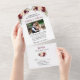 Elégante aquarelle Bourgogne Florale Photo All In One avec carte RSVP inclut roses bordeaux, roses roses roses, roses rouges et verdure botanique.