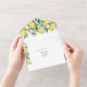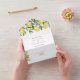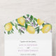Invitations de mariage d'agrumes frais avec des citrons d'aquarelle vibrants et des feuilles verts brillants avec de jolies fleurs, complétées par des accents de lavande douce.