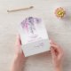 Feuille de vigne lâche en cascade, peinture aquarelle botanique, invitation tout-en-un pour un mariage heureux à tout jamais. Un beau design d'art aquarelle lâche dans de jolies nuances d'indigo violet, rose et gris sur fond blanc. Personnalisez cette invitation de réponse détachable après le mariage avec vos propres détails d'événement, et ajoutez votre RSVP avec les options de repas pour invités à vos réponses détachables. D'autres couleurs et articles de mariage assortis sont disponibles. © Peinture à l'aquarelle originale et design de l'artiste et designer Sarah Trett pour www.mylittleedenweddings.com sur Zazzle.