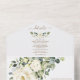 TOUTE EN UNE invitation. Pour la commande en vrac, vous devez supprimer les noms et l'adresse des invités! Elégant design carte avec aquarelle délicate fleurs blanches et feuilles verts, cloison fleurie, sur un arrière - plan blanc. Utilisez l'outil Personnaliser pour ajouter vos informations, modifier les polices, les couleurs de la police. Pour les articles correspondants, s'il vous plaît, visitez ma collection de Fleurs blanches délicates.