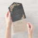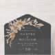 Le tout dans une faire-part de mariage triple avec un bouquet de pêche/aquarelle beige floral dans un cadre moderne arche sur un arrière - plan gris foncé. combinaison faire-part de mariage, carte rsvp et enveloppe. La carte de réponse est une carte perforée de déchirure rsvp avec choix de repas détaillés. Une solution moderne tout en un, pour empêcher la carte rsvp fermée de se retrouver accidentellement sous le réfrigérateur.