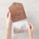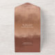 Ce faire-part de mariage moderne et minimaliste et RSVP combiné est légèrement informel avec une atmosphère chaleureuse et personnelle et présente un design abstrait et aquarelle ressemblant à des reflets sur l'eau. Cet exemple présente une palette de couleurs dégradées allant de la pêche pâle à la terre cuite foncée. Personnalisez avec le nom de la mariée et du marié, la date du mariage et les détails de l'événement en utilisant le modèle fourni. Recherchez ID774 pour voir l'ensemble complet de correspondances et les options de couleurs supplémentaires.