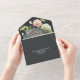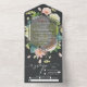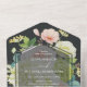 Elégante aquarelle blanche et verte hydrangées, roses roses et crème, marguerites et verdure sur un arrière - plan sombre, ces invitations de mariage triplées présentent vos détails en lettres chic dans des sections et une carte RSVP détachable pour les invités à compléter et revenir. **RAPPELEZ-VOUS d'apposer un cachet de carte postale sur la section carte RSVP et un cachet régulier sur la section adresse postale!