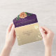 Charmante et audacieuse, cette faire-part de mariage tout-en-un rustique est ornée d'un arrière - plan en bois violet profond, de détails dorés vintages et de roses d'aquarelles dynamiques. Avec une typographie élégante et une RSVP intégrée, c'est un choix étonnant de sceau et d'envoi pour les couples qui planifient une fête romantique à la campagne - pas d'enveloppe nécessaire!