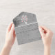 Invités Invitations à votre prochain mariage avec un arbre rose des coeurs Invitation de mariage tout en un. Le design Invitation présente un arrière - plan en bois gris orné d'un arbre aux coeurs florissants sur ses branches avec une carte RSVP perforée. Personnalisez avec les noms du marié et de la mariée ainsi que la date et l'emplacement du mariage. Papier à lettres mariage supplémentaire disponible avec cette conception aussi.