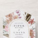 Magnifique invitation de mariage avec un cadre doré en forme d'arche orné de fleurs sauvages aquarelles de couleurs pastel et de pierres précieuses. Écrivez à la main les adresses des destinataires ou utilisez des étiquettes au dos de l'invitation. Contactez-moi si vous avez besoin d'aide.