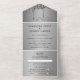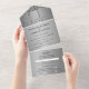 Argent, gris, RSVP, pétillant, Mariage All in One Invitation. Une triple élégance, chic, unique et moderne invitation à un mariage. Customisez avec vos détails. Commandez à temps pour éviter une déception.