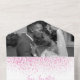 Nuances roses en cascade de couleurs par touches d'aquarelle, peinture moderne pour invitations de mariage après la cérémonie / mariage différé / premier anniversaire de mariage. Conception simple d'art moderne à l'aquarelle, idéale dans de jolies nuances de rose et de gris-violet sur fond blanc. Idéal pour ceux qui n'ont pas pu avoir un grand mariage le jour de leur mariage et célèbrent à la place avec une grande fête un an après. Titre de la fête : Amour, Rires et Heureux à tout jamais. Fête du premier anniversaire de mariage. Un design contemporain simple et moderne, personnalisez avec votre propre lieu de réception de mariage différé, les noms des mariés et les détails de réponse, et utilisez l'une de vos photos de mariage préférées du jour de votre mariage à l'intérieur du rabat. Ce design ne nécessite pas d'enveloppes supplémentaires et comporte un RSVP détachable perforé pour des réponses faciles. Produits de mariage assortis et autres options de couleurs disponibles. © Conception