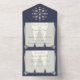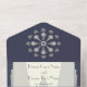 Apportez une touche de classe 20 rugissante à votre mariage ou événement spécial avec cette carte tout-en-un et faire-part de mariage RSVP. À l'intérieur, vous trouverez une roue argentée d'inspiration Art déco sur un arrière - plan cool, bleu acier au-dessus d'une section avec un échantillon de texte qui peut être customisé pour votre journée spéciale, et une section inférieure avec une pièce amovible, de taille carte postale qui a un échantillon de texte RSVP. Les deux sections avec des exemples de texte sont dotées de cadres argentés, de cadres de style Art déco et de surbrillances inspirées des projecteurs pour faire ressortir le texte. Des cadres Art déco en argent assortis avec des projecteurs peuvent être trouvés autour des zones où vous ajouteriez des timbres, des standards et des adresses de retour pour l'invitation dans son ensemble et la section RSVP retournable. Le rabat utilisé pour plier et sceller la carte a une roue argentée Art Déco sur un arrière - plan bleu acier avec un échantillon d'initiales que vous pouvez customiser pour une touche personnelle finale. N'oubliez pas de consulter le reste de l'ensemble Swanky Art Déco in Blue pour d'autres produits de coordination, y compris les étiquettes d'adresse de retour.