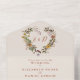 Faire-part de mariage tout-en-un avec vos initiales monogrammes dans une jolie guirlande à coeur fleurie et vos détails dans une typographie élégante. L'invitation comprend une carte RSVP perforée. Conçu par Thisisnotme©