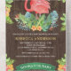 Invitation Tout En Un Baby shower de Flamant rose rustique Tropical Wood