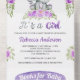 Invitation Tout En Un Baby Shower Éléphant Aquarelle Fleur Violet