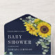 Invitation Tout En Un Baby shower Feuille des fleurs de soleil bleu mari