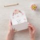 Un fond blanc orné de fleurs roses rousses, papillons et pelouse de pampas. Personnalisez et ajoutez un nom, et les détails. Lettres de couleur noire. Avec un billet de tombola.