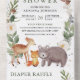 Invitation Tout En Un Baby shower Rustique Bois Forêt Cute Animaux
