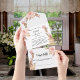 Un fond blanc décoré de fleurs roses rousses, de l'herbe de pampas et d'un ours en peluche tenant un ballon rose. Personnalisez et ajoutez un nom, et les détails. Lettres de couleur noire. Avec un billet de tombola.