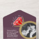 Cette invitation à un dîner pour un 40ème anniversaire de mariage comporte un RSVP détachable qui peut être scellé, donc aucune enveloppe n'est requise. Invitations d'anniversaire de mariage avec graphique de rubis rouge dans une bague en or, personnalisez avec vos propres détails de fête d'anniversaire de mariage et options de repas de réponse ainsi qu'en incluant deux photos du couple célébrant l'anniversaire. Facilitez l'envoi pour vous et vos invités car aucune enveloppe n'est requise, il suffit d'écrire à la main sur vos invitations scellées et vos invités peuvent répondre avec le RSVP détachable pour des réponses rapides et faciles concernant les repas. Idéal pour un dîner formel. Le quarantième anniversaire de mariage est associé au rubis. D'autres articles assortis sont disponibles. Graphismes et conception de Sarah Trett pour www.mylittleeden.com