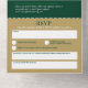 Cette invitation pour une fête d'anniversaire de mariage de cinquante-cinq ans comporte un RSVP détachable afin qu'elle puisse être scellée, donc aucune enveloppe n'est requise. Des invitations d'anniversaire de mariage avec une pierre précieuse verte émeraude et un motif de bague en or, personnalisez avec les détails de votre fête d'anniversaire de mariage et répondez avec des demandes de musique de danse. Facilitez l'envoi pour vous et vos invités car aucune enveloppe n'est requise, il suffit d'écrire à la main sur vos invitations scellées et vos invités peuvent répondre avec le RSVP détachable pour des réponses rapides et faciles concernant les repas. Idéal pour une fête amusante pour un 55e anniversaire. Le 55e anniversaire de mariage est associé à la pierre précieuse précieuse émeraude. D'autres articles assortis et années d'anniversaire sont disponibles.
