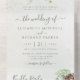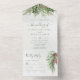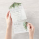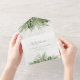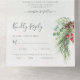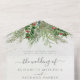 Belles invitations de mariage tout en un avec des aquarelles botaniques peintes à la main illustrant la verdure hivernale, les branches de pin et d'épinette, les cônes et les baies sèches. Un choix parfait pour les mariages à thème hiver ou Noël.
