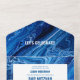 Cette invitation élégante combine avec brio la sophistication et l'énergie, ce qui en fait le choix parfait pour une célébration de Bar Mitzvah. Le fond présente une texture époustouflante qui évoque le mouvement apaisant des vagues de l'océan, tandis que la palette de couleurs bleue et blanche complète parfaitement l'occasion. Avec son thème inspiré du surf, de l'océan, de la plage ou de l'été, ce design ajoute une touche de plaisir et d'élégance à ce jour spécial.