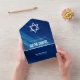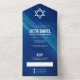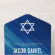 Cartes d'invitation Bar Mitzvah grunge bleu marine moderne tout-en-un pour votre jour spécial. Ce design unique présente un design bleu avec une étoile de David. Modifiez cette invitation vous-même à l'aide des outils de modèle en ligne.