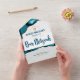 Soyez fier, réjouissez-vous et présentez cette étape importante de votre Bar Mitzvah préféré ! Envoyez cette invitation tout-en-un cool, unique, moderne et personnalisée pour un événement à retenir. Typographie bleu turquoise foncé et calligraphie de script, typographie sans serif faux or et fausse étoile de David superposent un arrière - plan blanc simple et propre avec agate bleu turquoise accentué de veines faux or. Ce produit tout-en-un est une combinaison unique d'une invitation personnalisée, y compris un lieu de soirée, avec une carte postale RSVP perforée facile à déchirer. Personnalisez le texte personnalisé avec le nom, la date et les informations sur le lieu de votre Bar Mitzvah. Garanti d'ajouter du style à son occasion spéciale ! Il suffit de taper le nom de votre fils, le nom hébreu, la date, le lieu du temple, les détails du lieu du soir et d’autres informations, et vous pouvez facilement personnaliser cette invitation tout-en-un Bar Mitzvah. S'il vous plaît, envoyez-moi un message avec toute question ou demande.