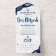 Invitation Tout En Un Bar Mitzvah Navy Blue Agate Script Party Moderne