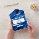 Cette invitation élégante combine avec brio la sophistication et l'énergie, ce qui en fait le choix parfait pour une célébration de Bar Mitzvah. Le fond présente une texture époustouflante qui évoque le mouvement apaisant des vagues de l'océan, tandis que la palette de couleurs bleue et blanche complète parfaitement l'occasion. Avec son thème inspiré du surf, de l'océan, de la plage ou de l'été, ce design ajoute une touche de plaisir et d'élégance à ce jour spécial.
