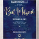 Soyez fier, réjouissez-vous et présentez cette étape importante de votre Bat mitzvah préféré ! Envoyez cette magnifique invitation tout-en-un moderne et personnalisée pour un événement à retenir. Maillot d'or brillant, points de parties scintillant et script de typographie superposent un arrière - plan d'aquarelle bleu marine riche, dramatique. Ce produit tout-en-un est une combinaison unique d'une invitation personnalisée, y compris un lieu de soirée, avec une carte postale RSVP perforée facile à déchirer. Personnalisez le texte personnalisé avec le nom, la date et les informations de votre Bat mitzvah. Garantie d'ajouter du plaisir élégant à son occasion spéciale! Il suffit de taper le nom de votre fille, la date, le lieu du Temple, les détails du lieu du soir et d’autres informations, et vous pouvez facilement personnaliser cette invitation tout-en-un Bat mitzvah. S'il vous plaît, envoyez-moi un message avec toute question ou demande.