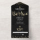 Invitation Tout En Un Bat mitzvah moderne Black Gold Parties scintillant