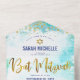 Invitation Tout En Un Bat mitzvah Turquoise Aquarelle Gold Script Party