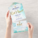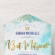 Invitation Tout En Un Bat mitzvah turquoise aquarelle or script girly