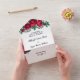 Rose rouge tout en un faire-part de mariage avec des arrangements rose dessinés à la main avec la verdure et l'haleine de bébé. L'autre côté de l'invitation, qui sera présenté comme une enveloppe, est blanc avec des bouquets de roses plus beaux.