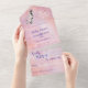 Invitation Tout En Un Bébé Fille Blanche en Route Cigogne Coucher de Sol