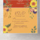 Faites une déclaration avec cette invitation à la mariage de automne tout-en-un, tonique de bijoux audacieuse et colorée, avec des flores d'aquarelle, des tournesols et de l'espace pour une photo personnalisée du couple. Alliant charme boho et design élégant, cette invitation unique est parfaite pour des fêtes d'automne remplies de personnalité et de chaleur. Personnalisez facilement avec vos détails de mariage et RSVP pour une expérience client élégante et pratique. Remarque : Cette invitation nécessite une enveloppe distincte pour l'envoi.