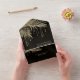 Optez pour un look éblouissant, éblouissant et glamour en utilisant les pièces de cette suite mariage comme indiqué, avec des bijoux en cascade des feuilles de palmiers incrustés de diamants ou supprimer les couches de bijoux pour un look un peu plus conservateur. Cet ensemble présente des feuilles en or chatoyant contre un arrière - plan texturé de la couleur riche du café noir. Le faire-part de mariage combiné et RSVP présenté ici a une bordure d'angle de feuilles pétillants, et une police Serif élégante à ajouter à la romance. Entrez facilement les détails de votre mariage et de votre RSVP à l'aide du modèle fourni. Affichez le lien de collection sur cette page pour voir tous les éléments correspondants dans ce bel ensemble ou recherchez ID830 pour voir d'autres options de couleur pour cette conception.