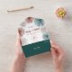 Éléments : éléments abstraits, noms sont dans un script délicieux, avec des détails dans une police sans serif amusante. Couleurs : turquoise foncé, paon, océan, vert mer, cuivre, gingembre, bisque, os, noix de coco, lin. Thèmes : lumineux, moderne, printemps, été, automne, lunatique, bohème, contemporain, branché, décalé, vinerie, expressionniste, boho chic. Collection : Abstrait moderne brillant Turquoise foncé, cuivre, Bisque Collection Mariage Type de produit : Invitation tout-en-un