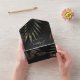 Invitation de mariage tropical de plage avec des aspects de noir et or.