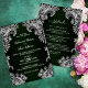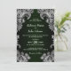 Invitation vos amis et proches à votre mariage avec cette élégante faire-part de mariage tout en un noir et vert dentelle blanche. Conçue pour le couple économe en budget, cette invitation comprend les informations de réception, les détails de la demande RSVP, et toute autre information que vous pouvez souhaiter inclure au verso de l'invitation, vous permettant d'économiser le coût d'achat d'affranchissement et de papeterie mariage supplémentaires. Remarque : aucune dentelle n'a été utilisée dans cette invitation.