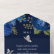 Un bel invitation tout-en-un luxueux et glamour avec des papillons nacrés qui croisent un arrière - plan bleu foncé avec de jolis roses bleus royaux bordés de faux sprigs en or. L'extérieur est d'une délicate couleur gris pastel et le rabat de l'ascenseur est d'un bleu foncé avec un design floral délicat. Le tiers inférieur a une carte de réponse déchirante avec adresse rsvp personnalisée et options de repas à compléter pour vos invités. Elles sont idéales pour un printemps, un été, un mariage d'automne ou d'hiver, pour une fête à thème rose et noir ou pour une célébration d'anniversaire mariage à thème luxueuse et élégante.