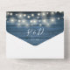Le tout dans une faire-part de mariage de jolies lampes à cordes, des jarres de maçon, des guirlandes florales dessinées à la main et une typographie chic sur un arrière - plan de panneaux de bois bleu rustique. L'invitation comprend une carte RSVP perforée qui peut être adressée individuellement ou laissée en blanc pour que vous puissiez écrire à la main les coordonnées de votre invité. Conçu par Thisisnotme©