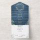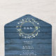 Le tout dans un faire-part de mariage avec une guirlande fleurie décorative et une bordure en or contenant vos initiales monogrammes sur un arrière - plan en bois de grange bleu rustique. L'invitation comprend une carte RSVP perforée qui peut être adressée individuellement ou laissée en blanc pour que vous puissiez écrire à la main les coordonnées de votre invité. Conçu par Thisisnotme©
