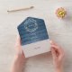 Invitation Tout En Un Bleu Rustique Bois Monogramme Vert Mariage Floral