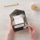 DISPONIBLE AVEC OU SANS CODE QR OU AVEC OU SANS OPTIONS DE SÉLECTION DE DINER. Moderne et unique, ce design présente un bouquet de graminées séchées, de fleurs et de plantes dans un style bohème sur un fond noir doux qui a été dévasté avec de l'or champagne. Ajoutez un code QR à votre invitation pour que les invités puissent accéder rapidement à votre site Web de mariage pour les détails, les directions, les options de menu et plus encore, ou ajoutez l'URL de votre registre de cadeaux. Les invitations personnalisées tout-en-un sont une combinaison unique d'une invitation personnalisée magnifiquement imprimée avec une carte-réponse perforée facile à détacher. Et elles sont si faciles à utiliser ! Vous pliez simplement, puis scellez le rabat arrière avec les trois autocollants clairs inclus, et envoyez par la poste. Et lorsque vos invités reço